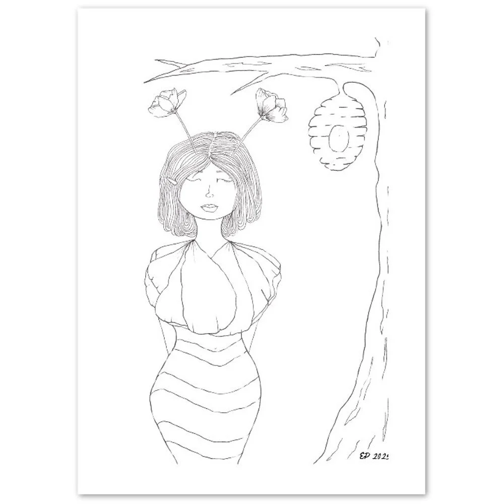 Petal Sisters ink illustrations are hand-drawn pieces inspired by nature, connection, and the strength of women. Available as premium cards or the full series in a coloring book, each whimsical design carries a sense of stillness and story, made to be left in black and white or brought to life with your color and meaning.